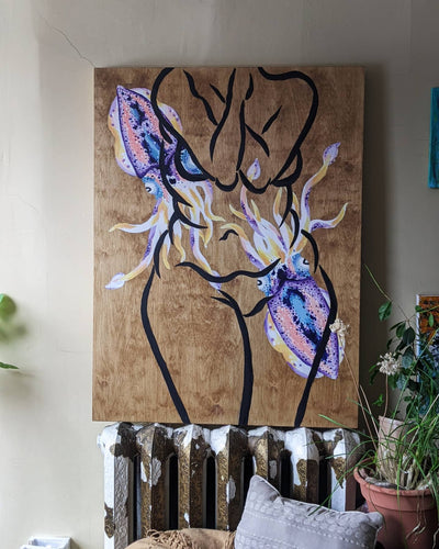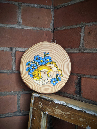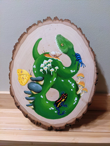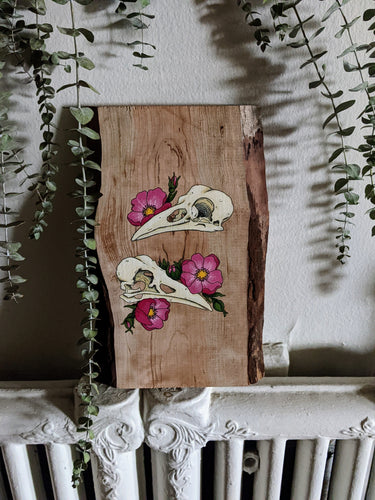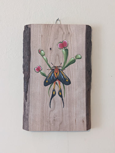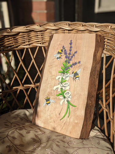 Whimsical paintings on beautiful pieces of wood.